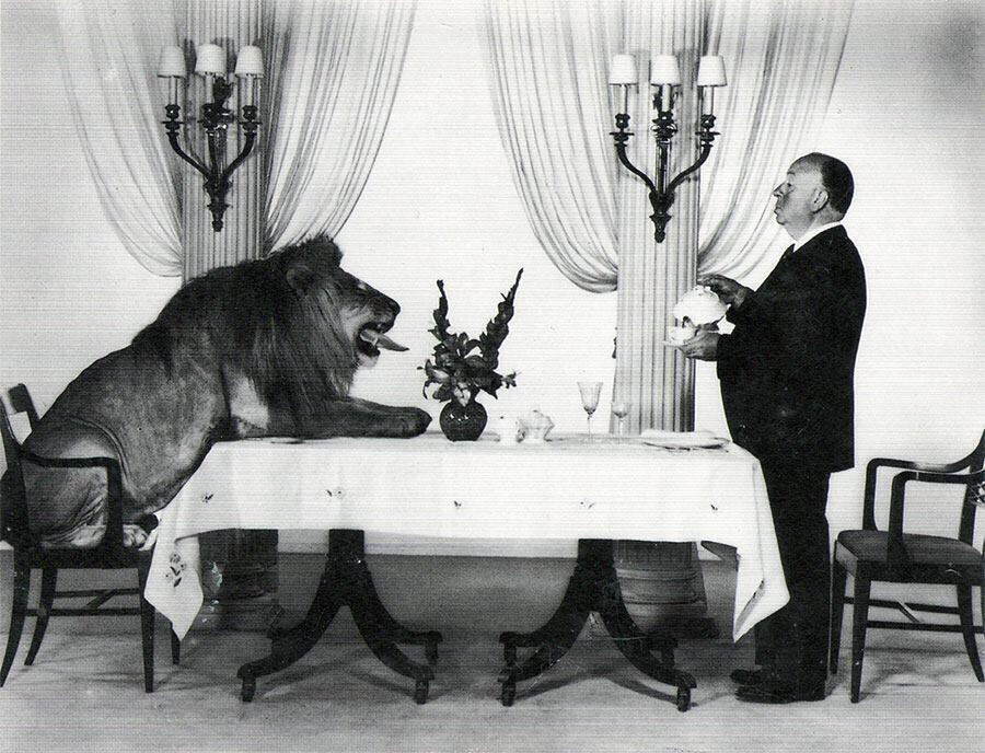 Alfred Hitchcock serverar te till Leo, MGM's maskot, 1958